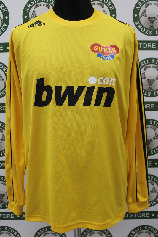 La Maglia Dukla Praga portiere disponibile nella taglia M, prodotto realizzato dalla Adidas originale dell’epoca , logo Dukla Praga termoapplicato in plastica, logo adidas ricamato, sponsor termoapplicato in plastichina, numero termoapplicato in plastichina