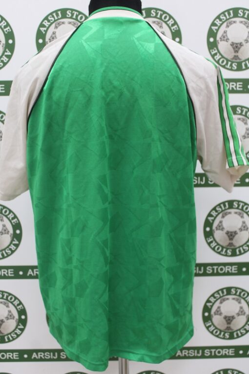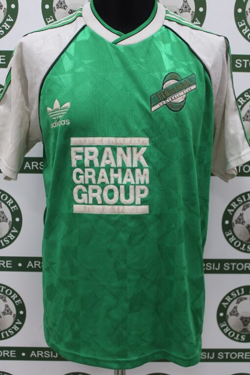 La Maglia Hibernian home è risalente alla stagione 1989/92 è disponibile nella taglia 40/42, prodotto realizzato dall’Adidas originale dell’epoca , logo Hibernian termoapplicato in flock, logo adidas termoapplicato in flock, sponsor termoapplicato in flock
