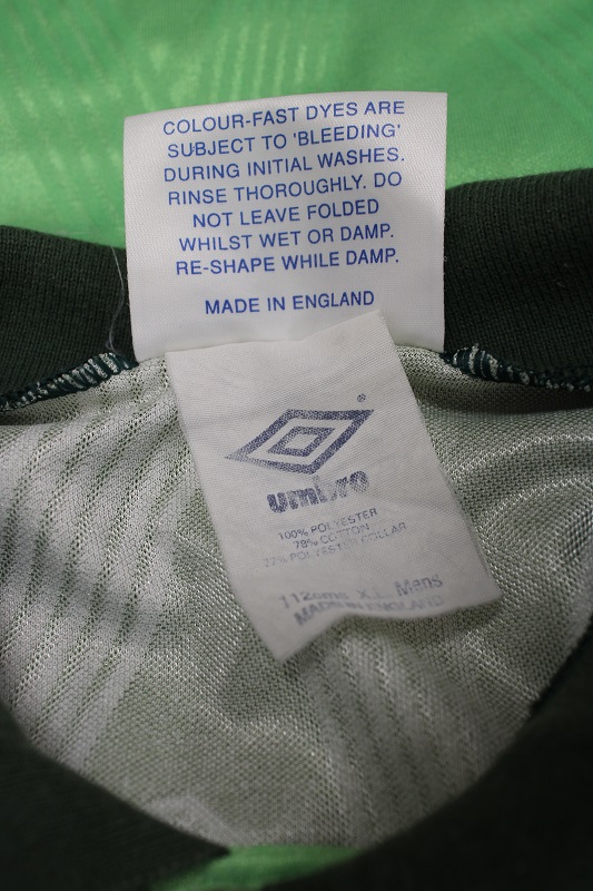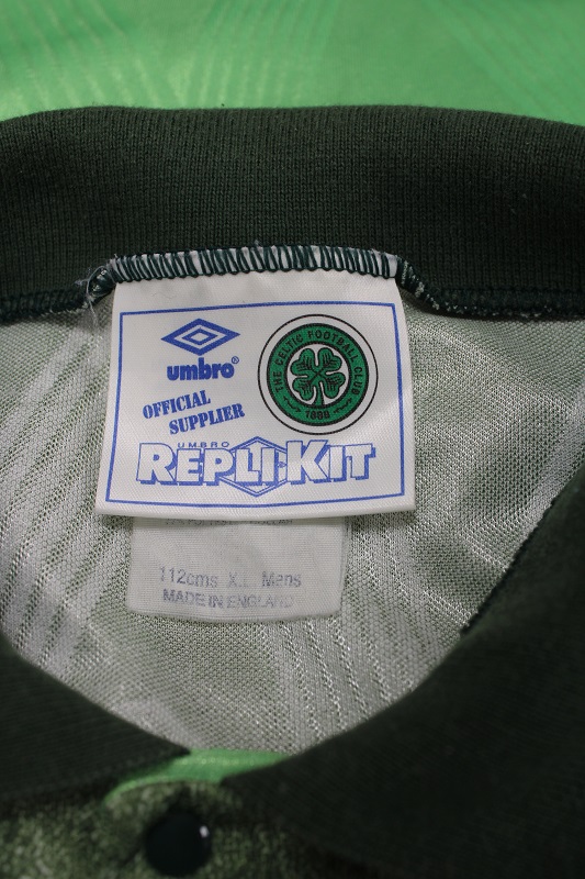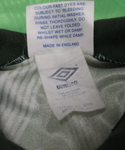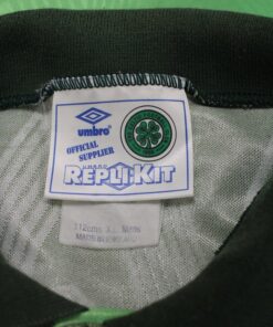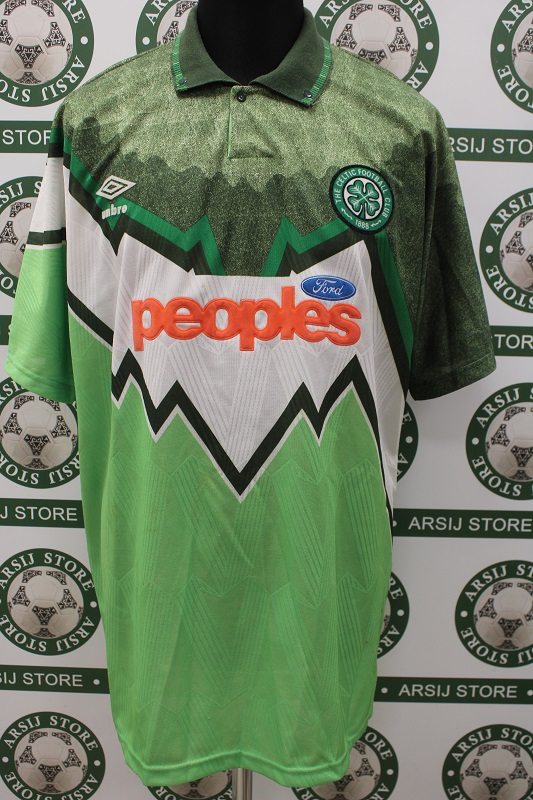 La Maglia Celtic away è risalente alla Stagione 1991/92 è disponibile nella taglia XL, prodotto realizzato dalla Umbro originale dell’epoca , presenta ancora l’etichetta replikit , logo Celtic termoapplicato in flock a rilievo, logo umbro termoapplicato in flock, sponsor Peoples termoappliato in flock