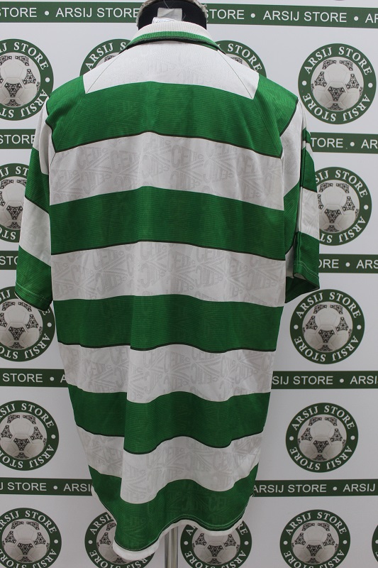La Maglia Celtic Home è risalente alla Stagione 1991/92 è disponibile nella taglia XL, prodotto realizzato dalla Umbro originale dell’epoca , presenta ancora l’etichetta replikit , logo Celtic termoapplicato in flock a rilievo, logo umbro termoapplicato in flock, sponsor Peoples termoappliato in flock
