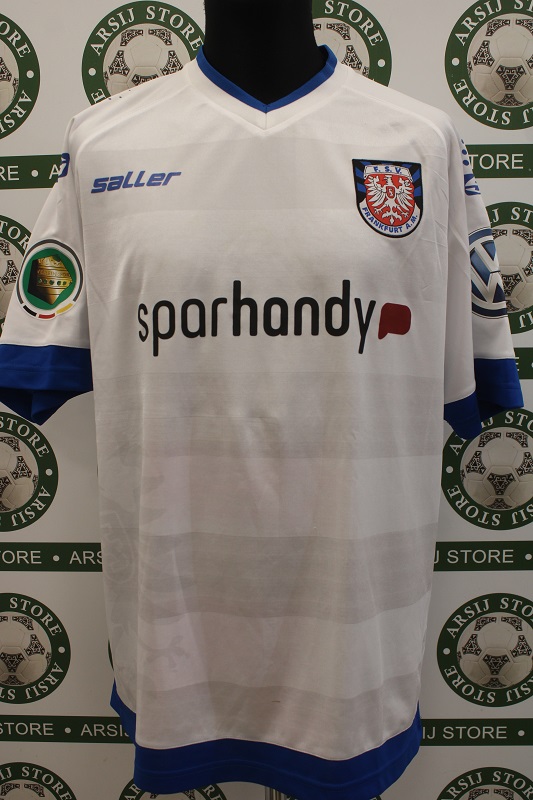 La Maglia Frankfurt away Match Worn Maglia è disponibile nella taglia L/XL, prodotto realizzato dalla Saller originale dell’epoca , logo Frankfurt cucito in rilievo, logo saller termoapplicato, sponsor termoapplicato in plastichina, nome e numero termoapplicato in plastichina