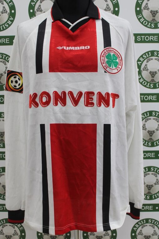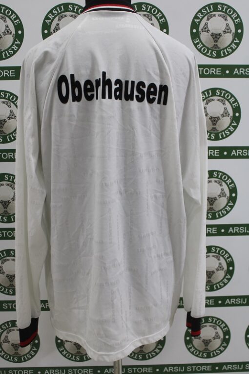 La Maglia Oberhausen home è risalente alla stagione 1998/99 è disponibile nella Taglia XL, prodotto realizzato dalla Umbro originale dell’epoca , logo Oberhausen termoapplicato in flock, scritta umbro termoapplicata in flock, sponsor termoapplicato in flock