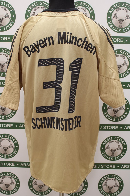 La Maglia Bayern Monaco away di Schweinsteieger è risalente alla stagione 2004/05 è disponibile nella taglia L, prodotto realizzato dall’ Adidas originale dell’epoca , logo Bayern Monaco ricamato, logo adidas ricamato, sponsor termoapplicato in plastichina, nome e numero termoapplicato in plastichina