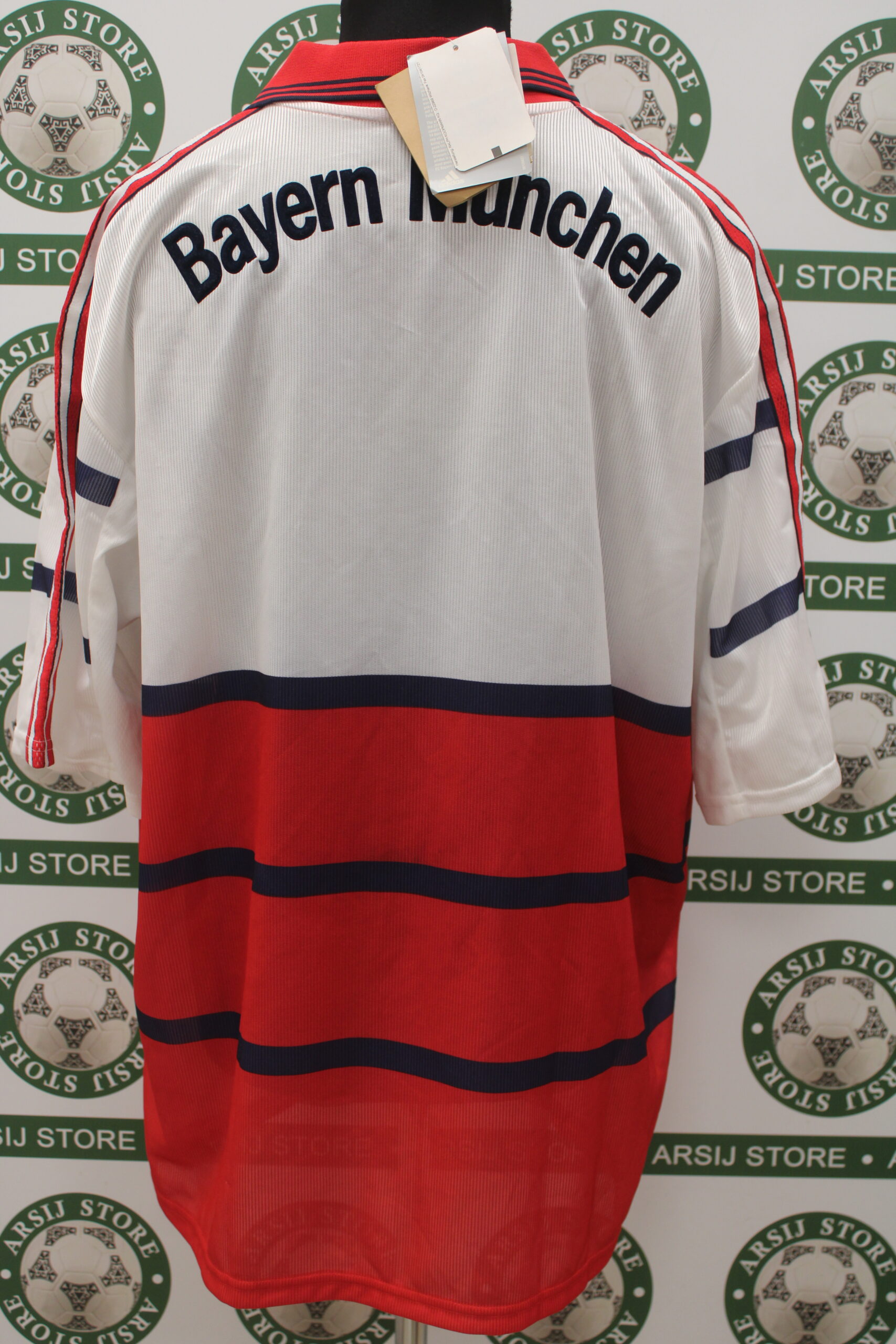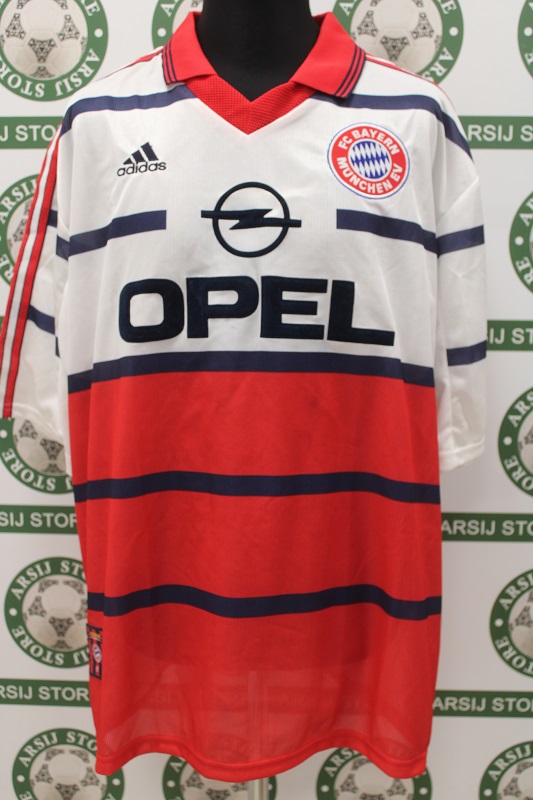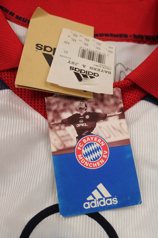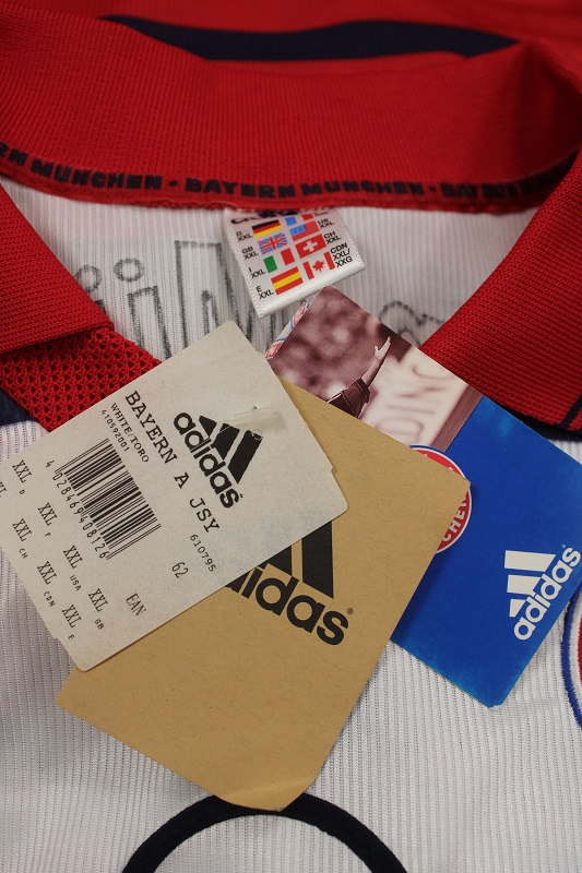 La Maglia Bayern Monaco away Nuova è risalente alla Stagione 1998/99 è disponibile nella taglia XXL, prodotto realizzato dall’Adidas originale dell’epoca , logo Bayern Monaco cucito in rilievo, logo adidas ricamato, sponsor termoapplicato in flock a rilievo, nome e numero termoapplicato in flock