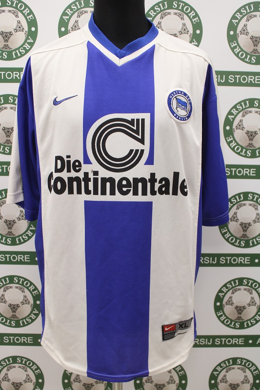 La Maglia Hertha Berlino home è risalente alla Stagione 1999/00 è disponibile nella taglia XL, prodotto realizzato dalla Nike originale dell’epoca , logo Hertha Berlino cucito in rilievo, logo nike ricamato, sponsor in trama di maglia
