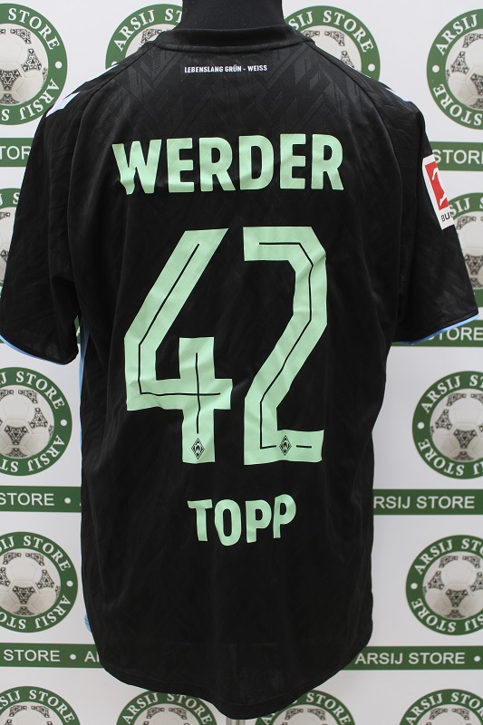 La Maglia Werder Brema athird di Keke Topp è risalente alla stagione 2024/25 è disponibile nella taglia L, prodotto realizzato dalla Hummel originale dell’epoca , logo Werder Brema termoapplicato in plastichina, logo hummel termoapplicato in plastichina, nome e numero termoapplicato in plastichina