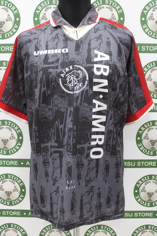 La Maglia Ajax home è risalente alla Stagione 1996/97 è disponibile nella taglia L, prodotto realizzato dalla Umbro originale dell’epoca , logo Ajax ricamato, logo umbro ricamato, sponsor Abn in trama di maglia , Nome e Numero termoapplicati in flock