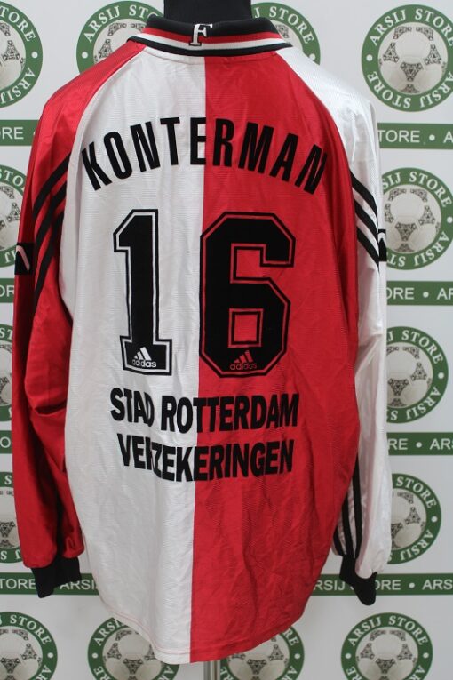 La Maglia Feyenoord home Match Worn di Konterman è risalente alla stagione 1998/99 è disponibile nella taglia XXL, prodotto realizzato dall’Adidas originale dell’epoca , logo Feyenoord cucito in rilievo, logo adidas ricamato, sponsor termoapplicato in flock, nome e numero termoapplicato in flock
