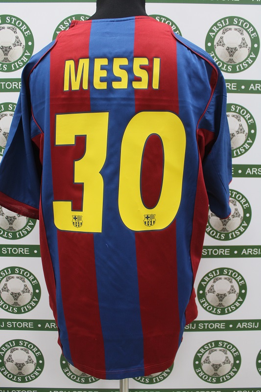 La Maglia Barcellona home di Lionel Messi è risalente alla Stagione 2004/05 è disponibile nella taglia XL, prodotto realizzato dalla Nike originale dell’epoca , logo Barcellona cucito in rilievo, logo nike ricamato, sponsor termoapplicato in plastichina, nome e numero termoapplicati in plastichina