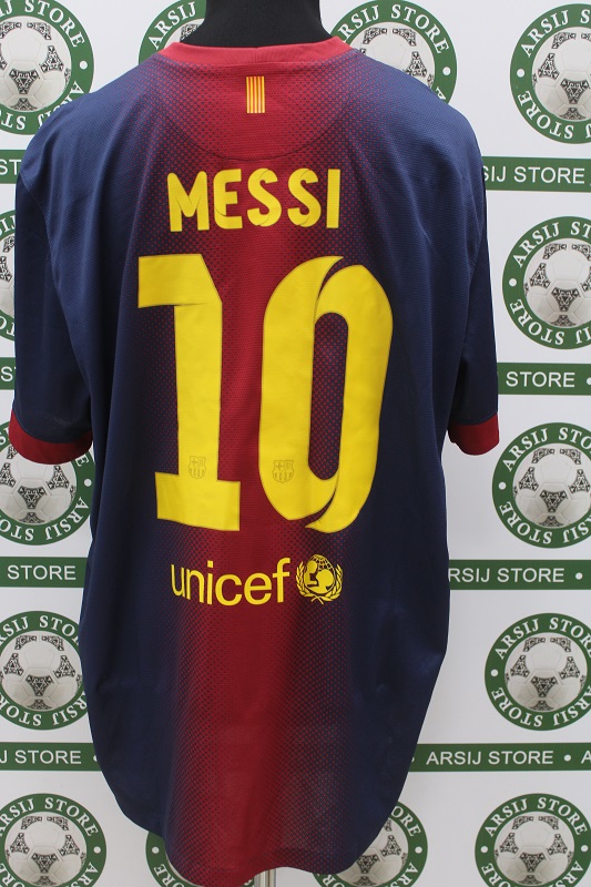La Maglia Barcellona home di Lionel Messi è risalente alla Stagione 2012/13 è disponibile nella taglia XXL, prodotto realizzato dalla Nike originale dell’epoca , logo Barcellona cucito in rilievo, logo nike ricamato, sponsor termoapplicato in plastichina, nome e numero termoapplicato in plastichina