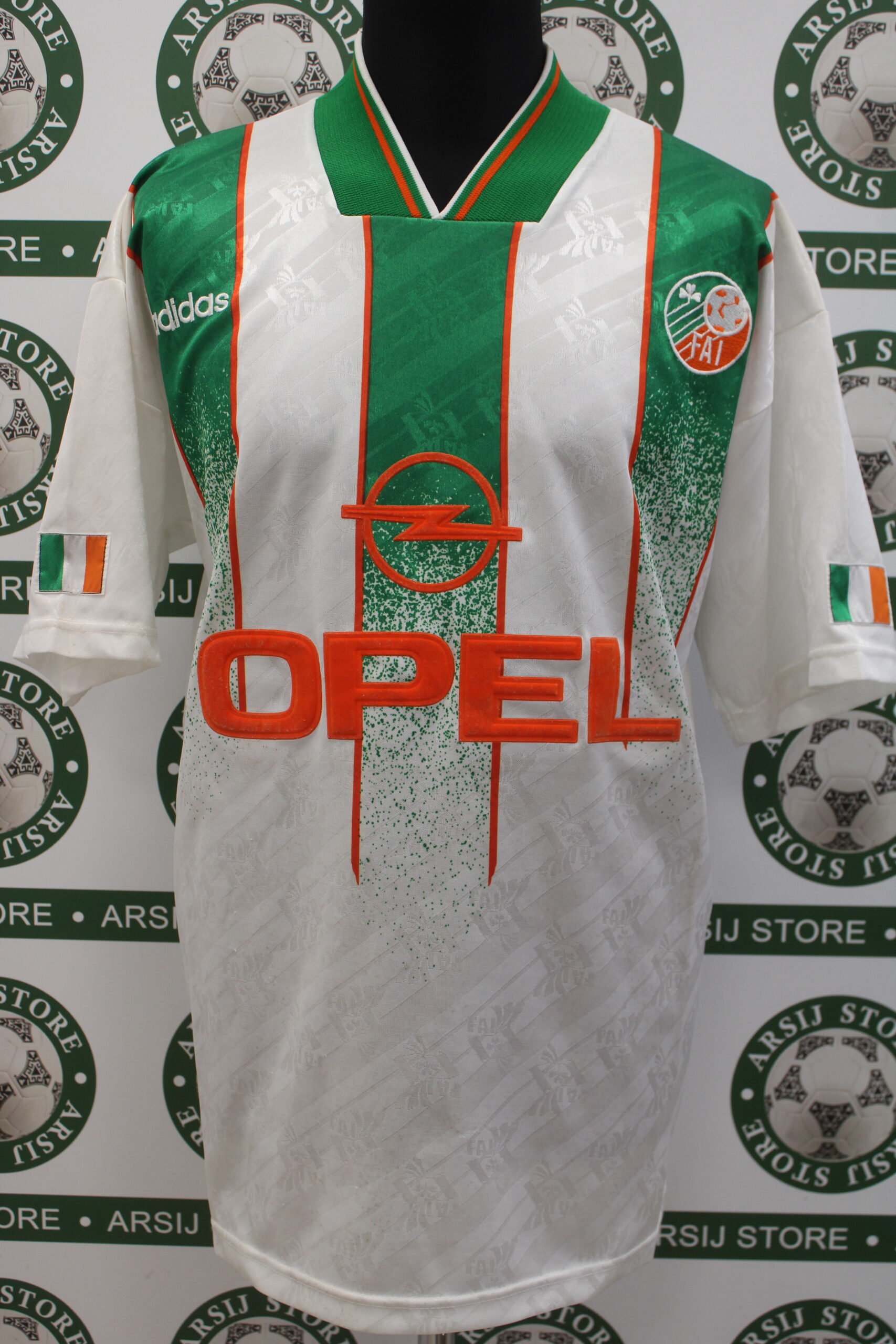La Maglia Irlanda away è risalente alla stagione 1994 è disponibile nella taglia 38/40, prodotto realizzato dall’Adidas originale dell’epoca , logo Irlanda ricamato, logo adidas ricamato, sponsor termoapplicato in flock