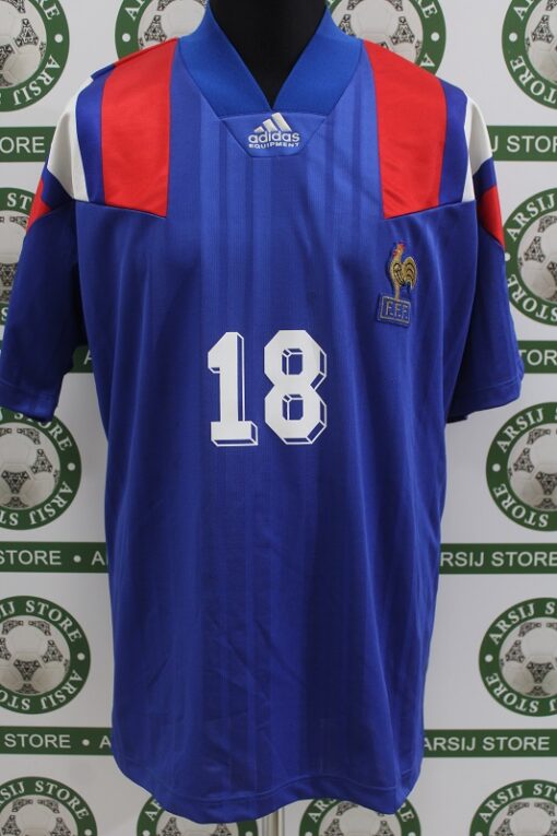 La Maglia Francia home di Eric Cantona è risalente all’Europeo 92 è disponibile nella taglia L, prodotto realizzato dall’Adidas originale dell’epoca , logo Francia cucito in rilievo, logo adidas termoapplicato in flock a rilievo, nome e numero termoapplicato in flock a rilievo