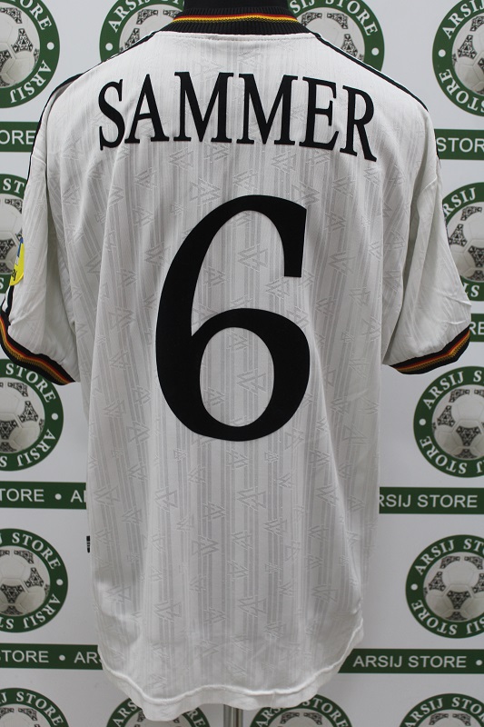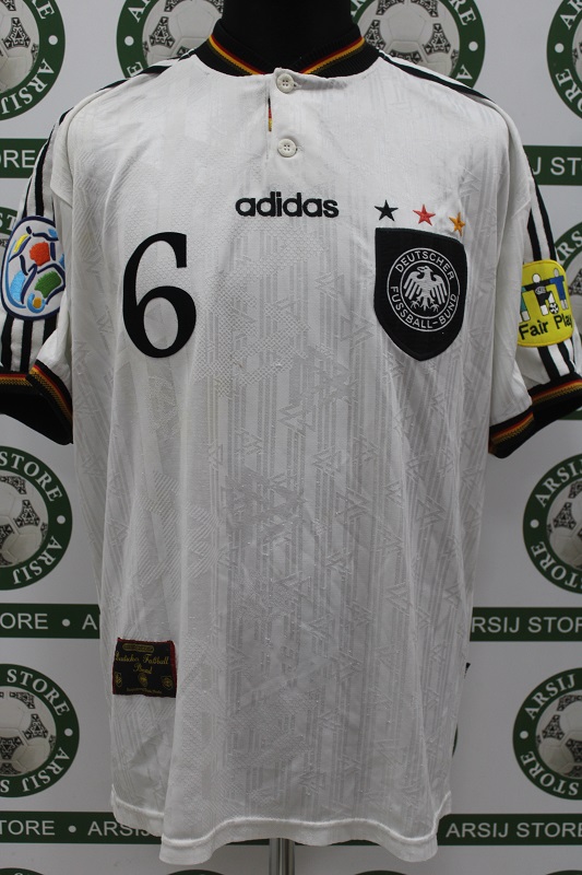 La Maglia Germania home di Matthias Sammer è risalente ad Euro 96 è disponibile nella taglia XL, prodotto realizzato dall‘Adidas originale dell’epoca , logo Germania cucito in rilievo, logo adidas ricamato, nome e numero termoapplicati in flock a rilievo.