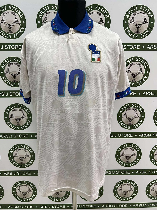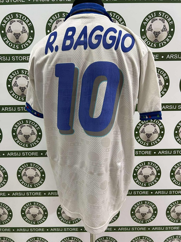 La Maglia Italia away di Roberto Baggio è risalente al Mondiale Usa 94 è disponibile nella Taglia L, prodotto realizzato dalla Diadora originale dell’epoca , logo Italia cucito in rilievo, Nome e Numero termoapplicato in flock a rilievo