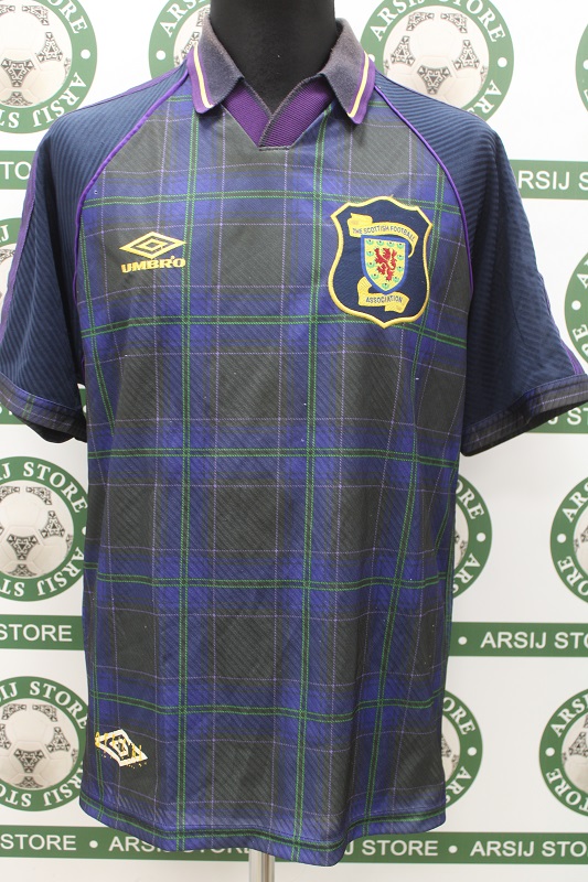 La Maglia Scozia home è risalente all’Europeo 1996 è disponibile nella taglia M, prodotto realizzato dalla Umbro originale dell’epoca ,logo Scozia cucito in rilievo, logo umbro ricamato, nome e numero termoapplicato in flock a rilievo