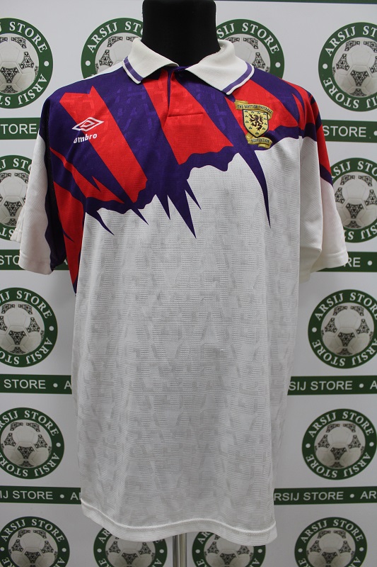 La Maglia Scozia away è risalente alla stagione 1991/93 è disponibile nella taglia XL, prodotto realizzato dalla Umbro originale dell’epoca , logo Scozia termoapplicato in flock, logo umbro in trama di maglia