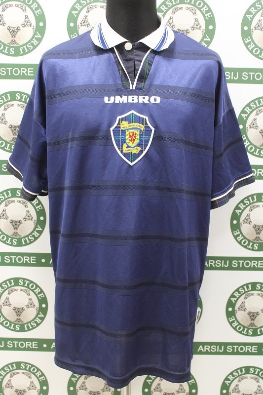 La Maglia Scozia home è risalente al Mondiale 1998 è disponibile nella taglia XL, prodotto realizzato dalla Umbro originale dell’epoca ,logo Scozia cucito in rilievo, logo umbro ricamato