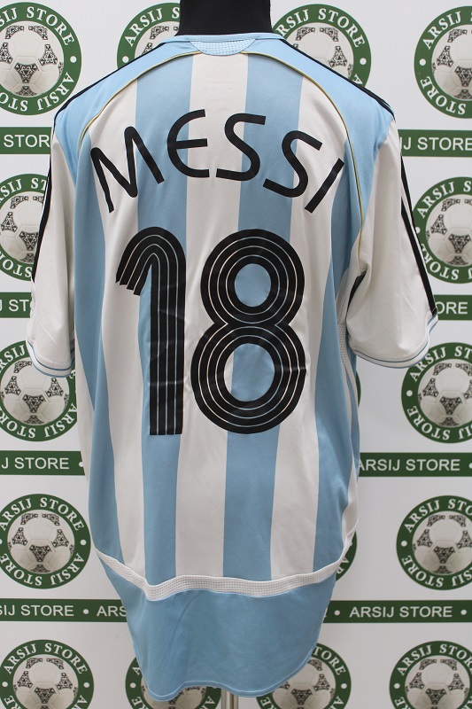 La Maglia Argentina home di Lionel Messi è disponibile nella taglia XL, prodotto realizzato dall’Adidas originale dell’epoca , logo Argentina ricamato, logo adidas ricamato, nome e numero termoapplicato in plastichina