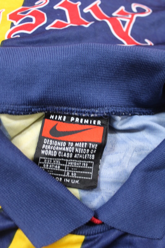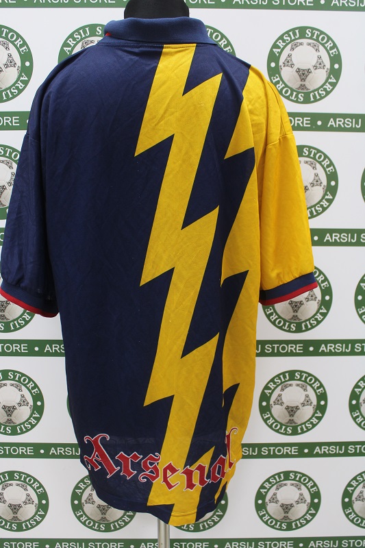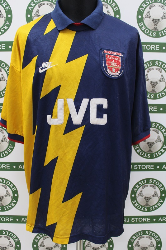 La Maglia Arsenal third è risalente alla Stagione 1995/96 è disponibile nella taglia XXL, prodotto realizzato dalla Nike originale dell’epoca , logo Arsenal cucito in rilievo, logo nike ricamato, sponsor Jvc termoapplicato in flock a rilievo