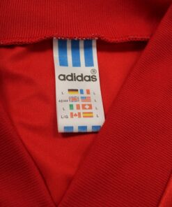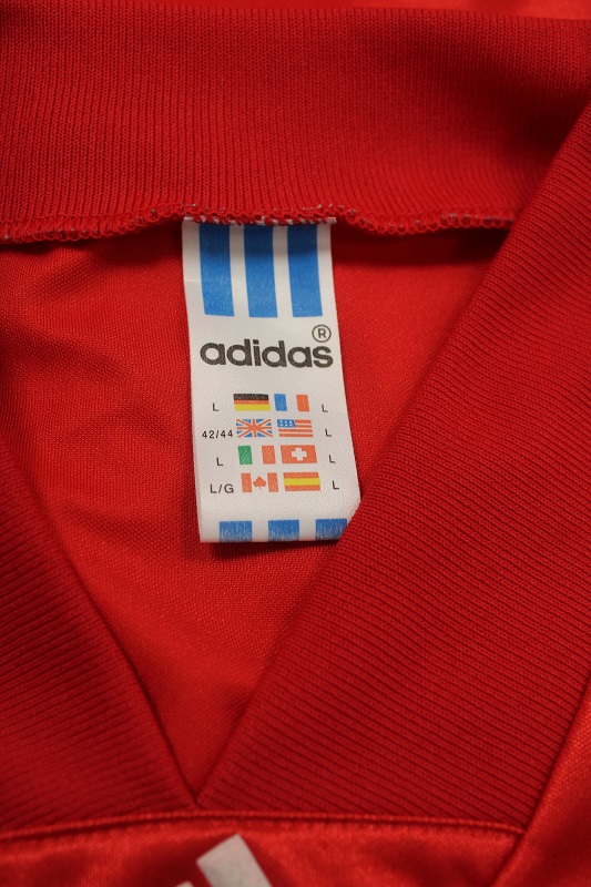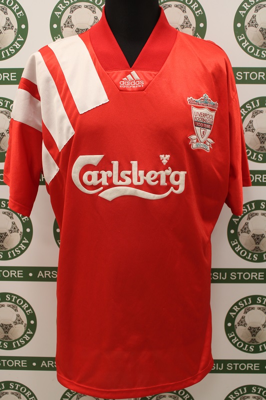 La Maglia Liverpool home è risalente alla stagione 1992/93 è disponibile nella taglia L, prodotto realizzato dall’Adidas originale dell’epoca , logo Liverpool termoapplicato in flock, logo adidas termoapplicato in flock, sponsor termoapplicato in plastichina