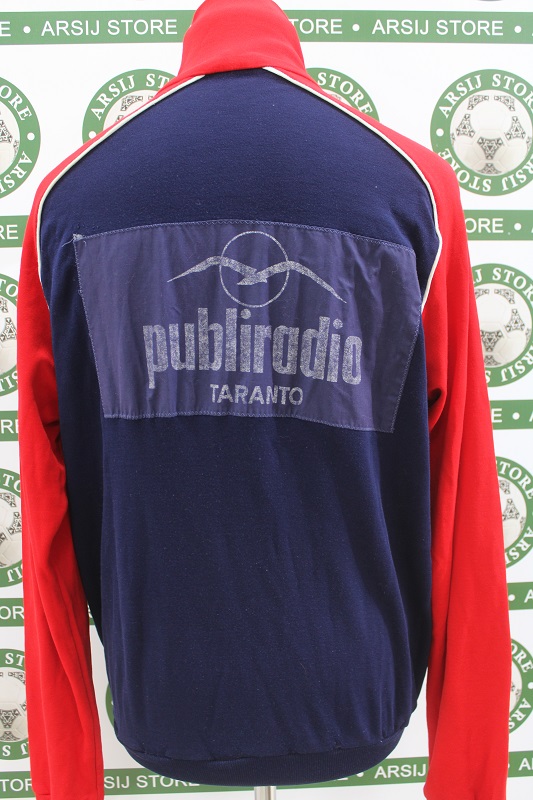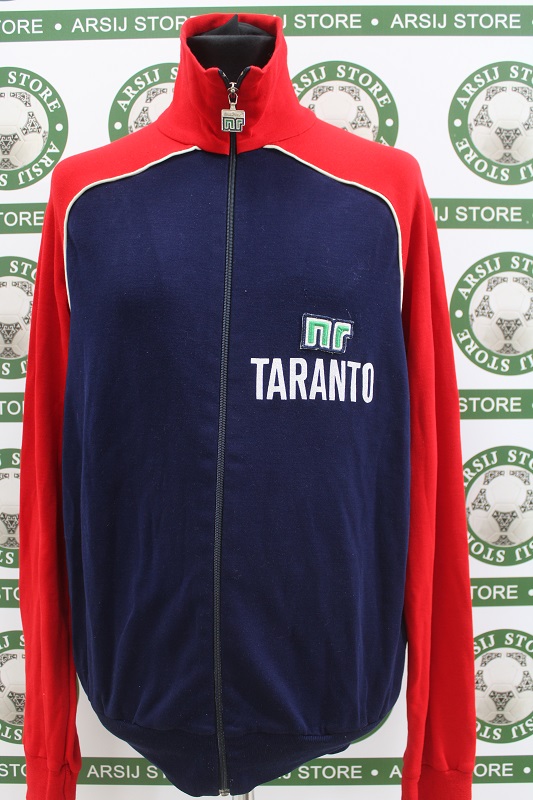 La Giacca Taranto è risalente alla stagione 1982/83 è disponibile nella taglia 52, prodotto realizzato dalla nr originale dell’epoca , logo Nr cucito in rilievo, scritta taranto in vernice