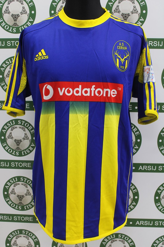 La Maglia Cervia home di Giuffrida è disponibile nella taglia M, prodotto realizzato dall’Adidas originale dell’epoca , logo Cervia in trama di maglia, logo adidas in trama di maglia, sponsor in trama di maglia, nome e numero termoapplicati in plastichina