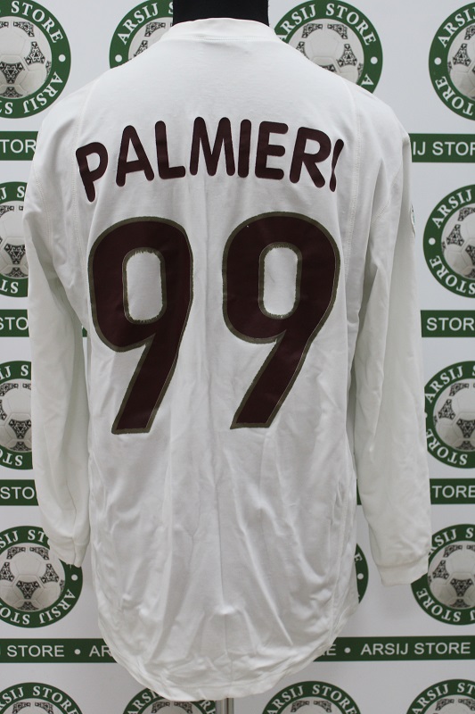 La Maglia Salernitana away Match Worn di Francesco Palmieri è risalente alla Stagione 2000/01 è disponibile nella taglia XL, logo Salernitana cucito in rilievo, logo tele + cucito in rilievo, sponsor termoapplicato in flock a rilievo.