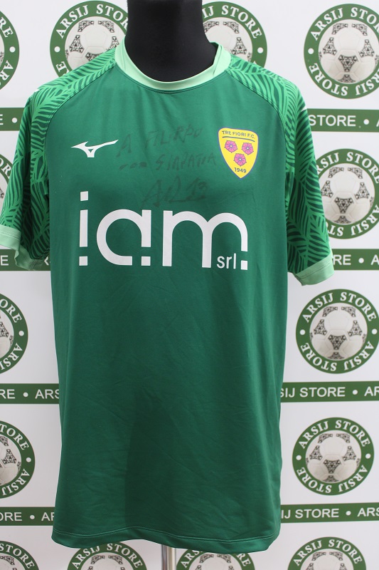 La Maglia Tre Fiori away è disponibile nella taglia L, logo Tre Fiori in trama di maglia, sponsor in trama di maglia, nome e numero termoapplicato in plastichina