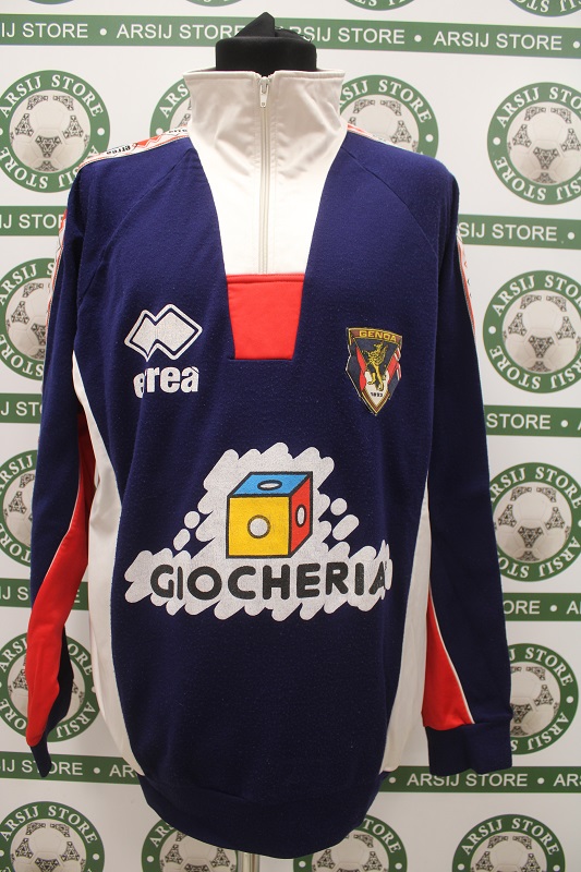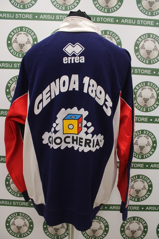 La Giacca Genoa è risalente alla stagione 1996/97 è disponibile nella taglia XL, prodotto realizzato dalla Errea originale dell’epoca , logo Genoa termoapplicato in flock, logo errea termoaplicato, sponsor termoapplicato