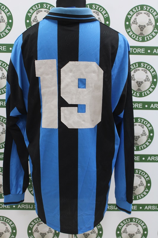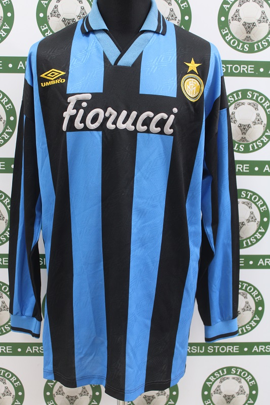 La Maglia Inter home è risalente alla Stagione 1994/95 è disponibile nella taglia XL, prodotto realizzato dalla Umbro originale dell’epoca , logo Inter ricamato, logo umbro ricamato, sponsor Fiorucci termoapplicato in flock a rilievo, numero cucito in panno