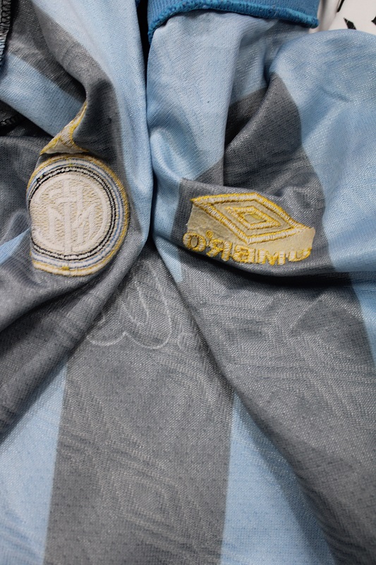 La maglia da campo si differenzia da quella store per il logo umbro e il logo inter ricamati
