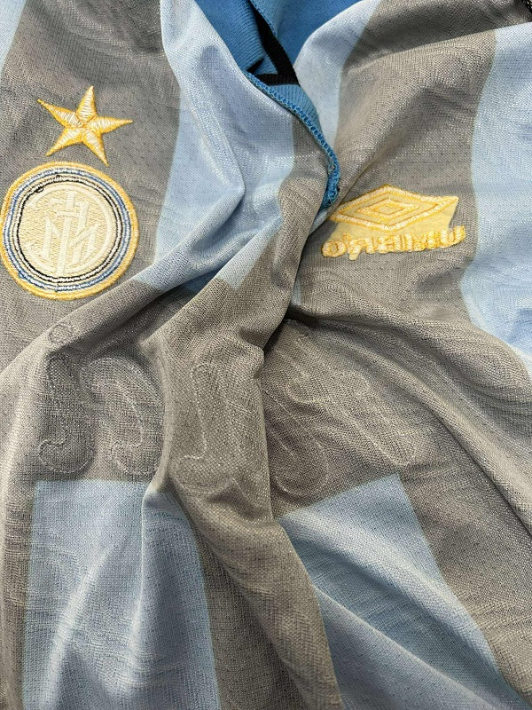 La maglia da campo si differenzia da quella store per il logo umbro e il logo inter ricamati