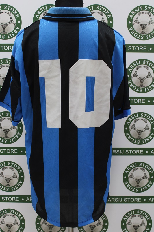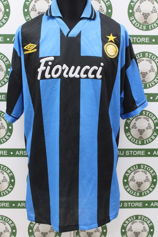 La Maglia Inter home è risalente alla Stagione 1994/95è disponibile nella taglia XL, prodotto realizzato dalla Umbro originale dell’epoca , logo Inter ricamato, logo umbro ricamato, sponsor Fiorucci termoapplicato in flock a rilievo, numero termoapplicato in flock