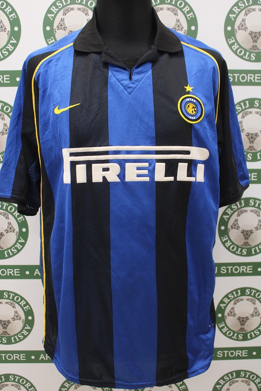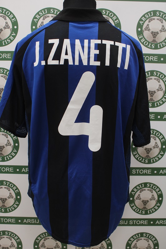 La Maglia Inter home di Javier Zanetti è risalente alla stagione 2001/02 è disponibile nella taglia L, prodotto realizzato dalla Nike originale dell’epoca , logo Inter termoapplicato in gommina, logo nike ricamato, sponsor termoapplicato in flock, nome e numero termoapplicato in plastichina