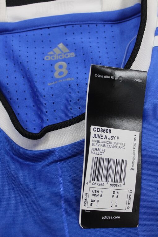 La Maglia Juventus away Nuova è risalente alla stagione 2016/17 è disponibile nella taglia 8, prodotto realizzato dall‘Adidas originale dell’epoca , logo Juventus termoapplicata in plasticha a rilievo, logo adidas termoapplicato in plastichina