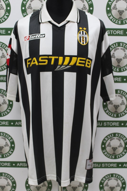 La Maglia Juventus home di Alessandro Del Piero è risalente alla Stagione 2001/02 è disponibile nella taglia XXL, prodotto realizzato dalla Lotto originale dell’epoca , logo Juventus cucito in rilievo, logo Lotto cucito in rilievo, sponsor Tu termoapplicato in flock a rilievo, nome e numero termoapplicati in plastichina