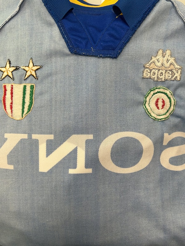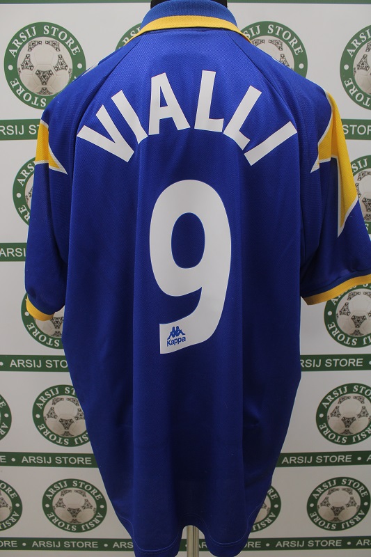 La Maglia Juventus Away di Gianluca Vialli è risalente alla Stagione 1995/96 è disponibile nella taglia XL, prodotto realizzato dalla Kappa originale dell’epoca , logo Juventus in trama di maglia, logo Kappa ricamato, scudetto ricamato, sponsor Sony in trama di maglia, nome e numero termoapplicati in plastichina