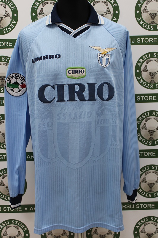 La Maglia Lazio home Match Worn di Giuseppe Favalli è risalente alla Stagione 1997/98 è disponibile nella taglia XL, prodotto realizzato dalla Umbro originale dell’epoca , logo Lazio ricamato, logo umbro ricamato, sponsor termoapplicato in flock a rilievo, nome e numero termoapplicati in flock