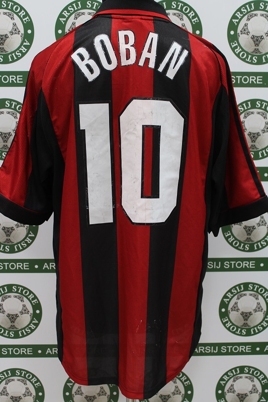 La Maglia Milan home di Zvonimir Boban è risalente alla Stagione 1999/00 è disponibile nella taglia L, prodotto realizzato dall‘Adidas originale dell’epoca , logo scudetto cucito in rilievo, logo Adidas ricamato, sponsor termoapplicato in flock a rilievo, nome e numero termoapplicati in plastichina