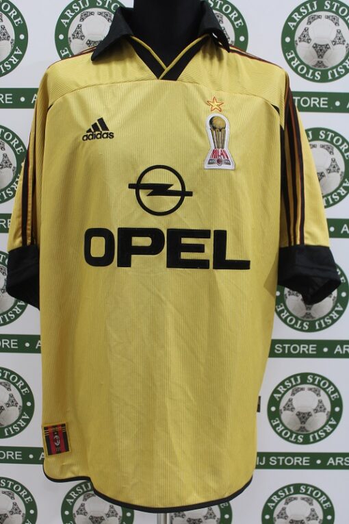 La Maglia Milan third è risalente alla Stagione 1999/00 è disponibile nella taglia XL, prodotto realizzato dall‘Adidas originale dell’epoca , logo Milan cucito in rilievo, logo Adidas ricamato, sponsor termoapplicato in flock a rilievo