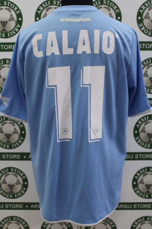 La Maglia Napoli home di Emanuele Calaiò è risalente alla Stagione 2006/07 è disponibile nella taglia XL, prodotto realizzato dalla Diadora originale dell’epoca , logo napoli cucito in rilievo, logo Diadora termoapplicata in plastichina, sponsor Lete termoapplicato in plastichina, nome e numero termoapplicati in plastichina