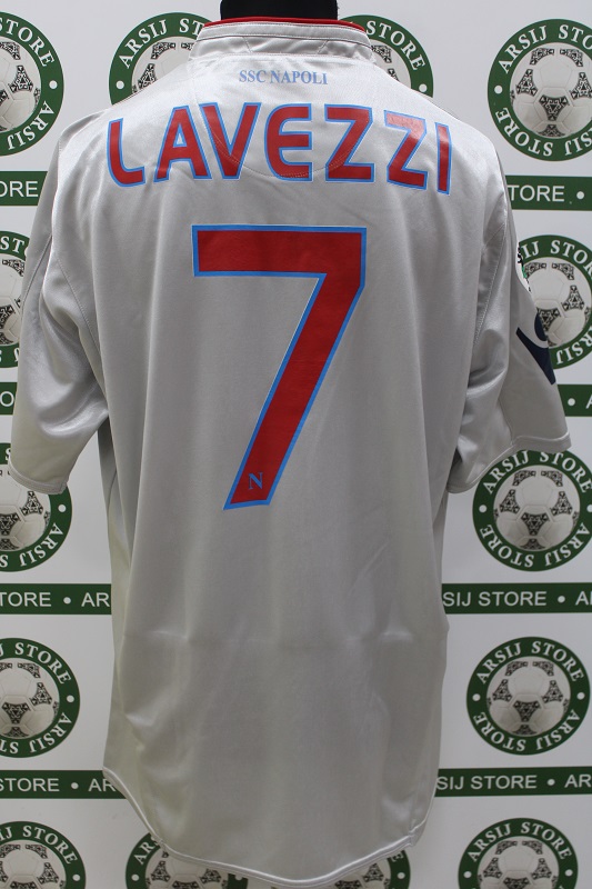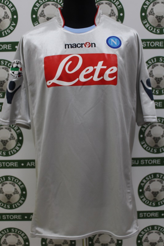 La Maglia Napoli third di Lavezzi è risalente alla Stagione 2009/10 è disponibile nella taglia XL, prodotto realizzato dalla Macron originale dell’epoca ,logo napoli cucito in rilievo, logo Macron ricamato, sponsor voiello termoapplicato in plastichina, nome e numero termoapplicati in plastichina