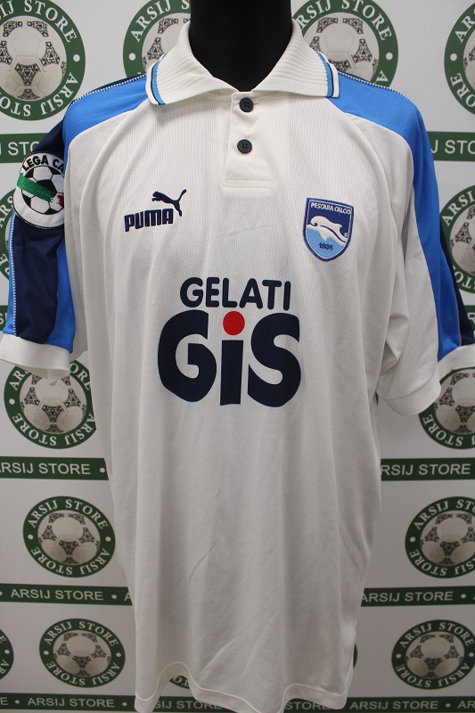 La Maglia Pescara home Match Worn di Ruznic è risalente alla stagione 1997/98 è disponibile nella taglia XL, prodotto realizzato dalla Puma originale dell’epoca , logo Pescara cucito in rilievo, logo puma termoaplicato in flock, sponsor in trama di maglia, nome e numero termoapplicato in flock