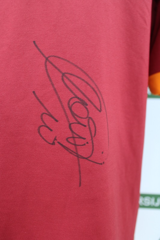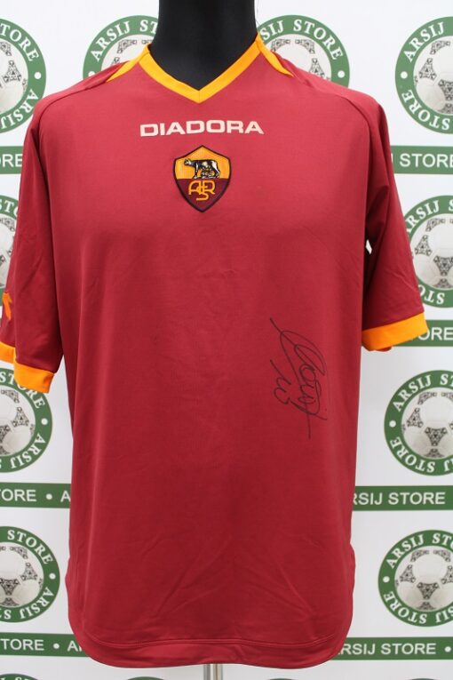 La Maglia Roma home Firma di Francesco Totti è disponibile nella taglia L, prodotto realizzato dalla Diadora originale dell’epoca , logo Roma termoapplicato in flock a rilievo, logo Diadora termoapplicato in plastichina