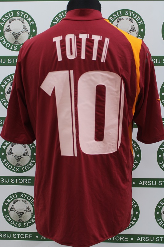 La Maglia Roma home di Francesco Totti è risalente alla Stagione 2005/06 è disponibile nella taglia L, prodotto realizzato dalla Diadora originale dell’epoca , logo Roma cucito in rilievo, logo Diadora termoapplicato in plastichina, nome e numero termoapplicati in plastichina