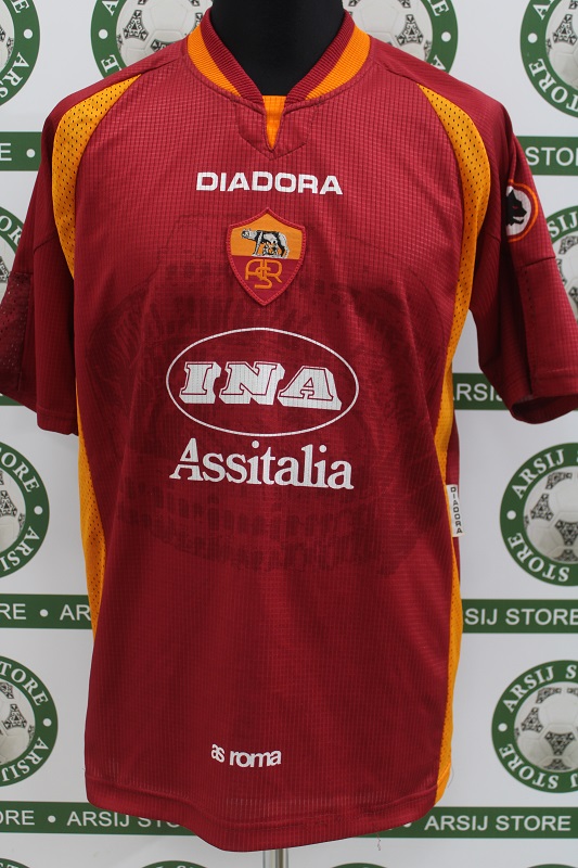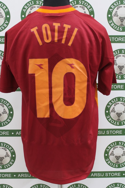 La Maglia Roma home di Francesco Totti è risalente alla Stagione 1997/98 è disponibile nella taglia L, prodotto realizzato dalla Diadora originale dell’epoca , logo Roma cucito in rilievo, logo Diadora in trama di maglia, sponsor Ina Assitalia in trama di maglia, nome e numero termoapplicato in plastichina