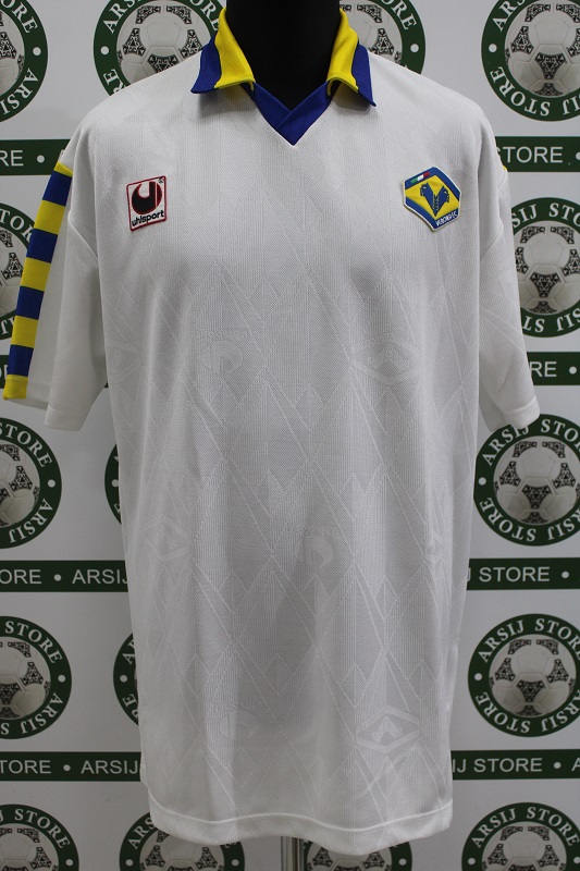 La Maglia Verona away è risalente alla stagione 1992/93 è disponibile nella taglia XL, prodotto realizzato dalla Uhlsport originale dell’epoca , logo Verona cucito in rilievo, logo uhlsport cucito in rilievo